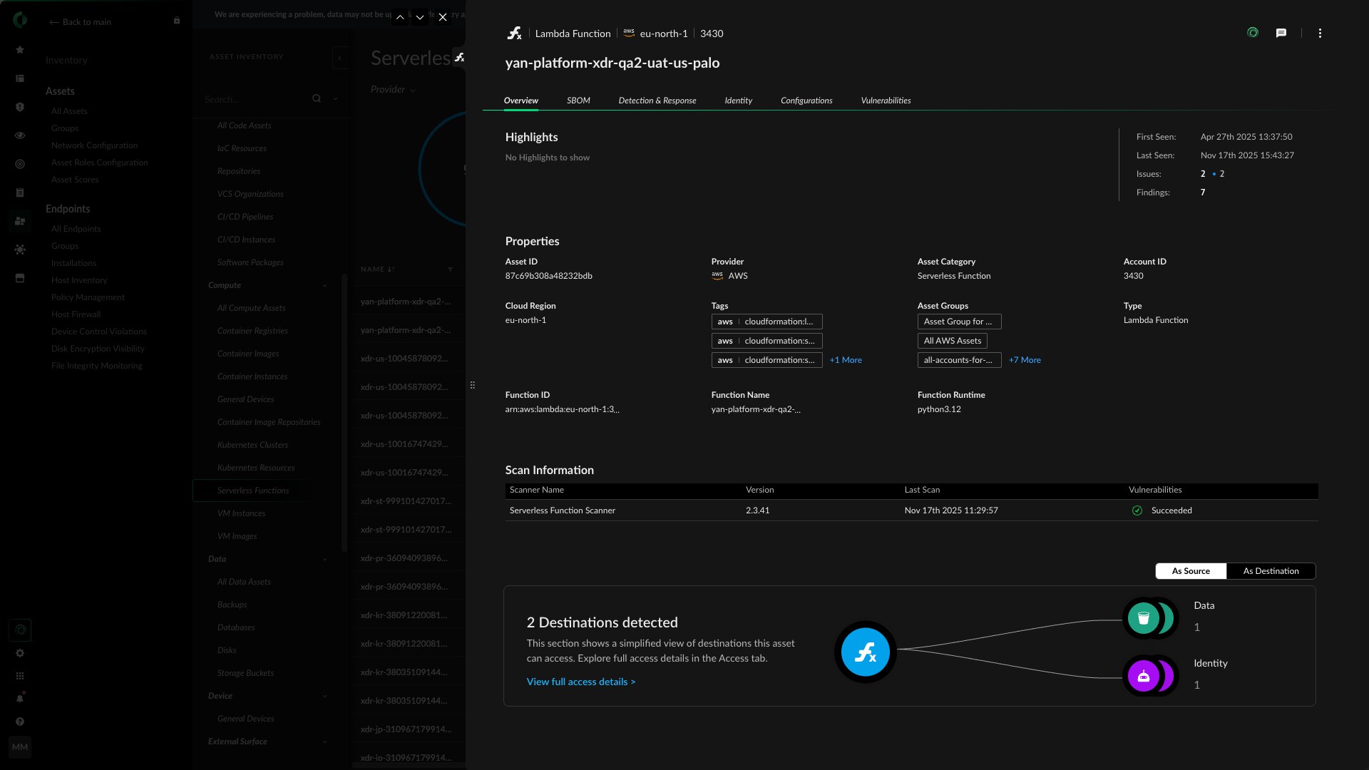Identify and secure functions running in your cloud environments through continuous scanning.